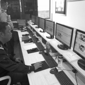 10月9日,驾考科目三考试过程中,考场工作人员在电脑前实时监控考试情况。图/记者陈正