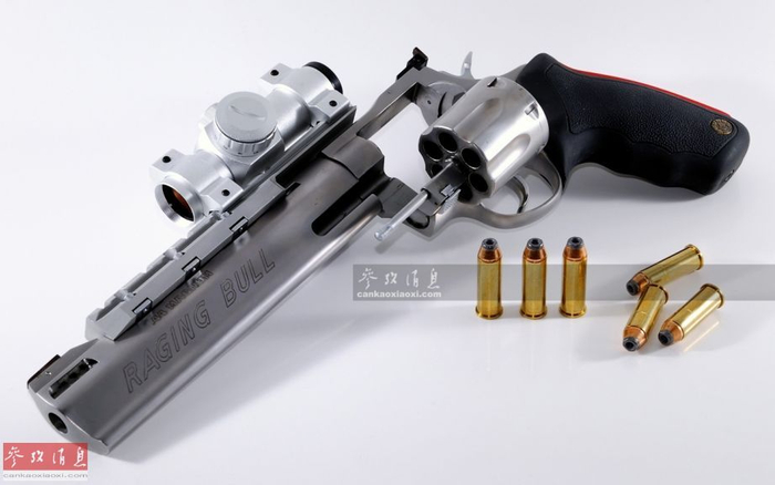 巴西“金牛座”公司的“愤怒公牛”大口径转轮手枪,可发射.44口径(约等于11毫米)麦格农弹药。