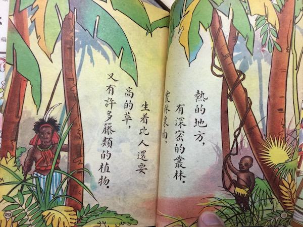 如《热的地方》为孩子们展现的就是热带地区的社会、地理环境,图书首页即提及“热的地方,有深密的丛林。丛林里面,生着比人还要高的草,又有许多藤类的植物”。