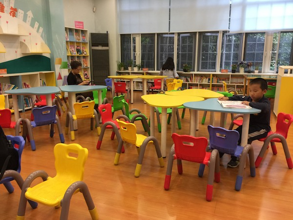 图书馆分为中学生、小学生与低幼馆三个区域,但从整体观感来看,服务对象年龄较低的低幼馆与小学生馆较之中学生馆常聚集着更多读者。某种程度上说,年龄越大的孩子,越没有时间泡图书馆。