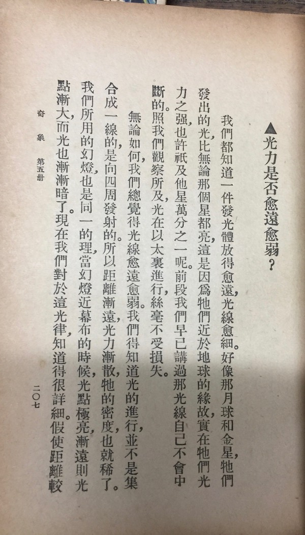 除了数学、美术,这套由商务印书馆在1933-1937年间出版的《小学生文库》,内容还涵盖社会、政治、经济、国际、法律、历史、传记、语文、算术、音乐、美术、劳作、故事、诗歌等40多个门类,是当时中高年级小学生课外阅读的“小百科全书”。其中,还有一本《奇象》,实际上是以问题为导向的自然科学类知识,类似今天的《十万个为什么》。
