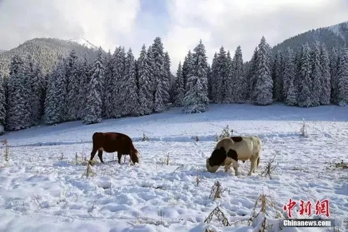 受近期冷空气影响,新疆奇台县江布拉克景区普降大雪。高靓 摄