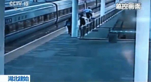 事发当天18点06分,由上海虹桥开往重庆北的D2217次动车组列车停靠在湖北建始火车站。一名旅客下车以后,动车缓缓地关上车门。在动车关门时,这名旅客试图控制住动车关门,但没能如愿。