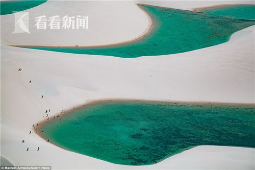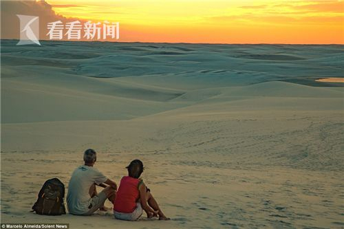 这片沙漠中的湖水每一年只会持续出现几个月,之后会慢慢蒸发干涸,所以巴西人充分利用这段时间来欣赏美景甚至过来游泳。