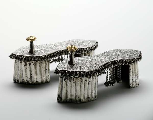 16世纪女性穿着的软木高底鞋(chopines)也是展出品之一,这种有着加高鞋底的厚底鞋设计的目的是让女性的鞋子和裙子避免被当时街道上的泥土灰尘弄脏。