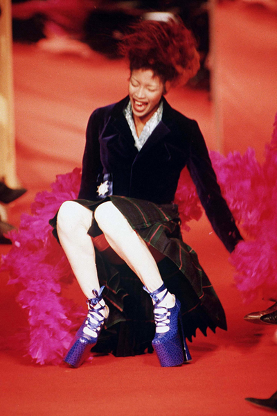 Naomi Campbell 1993年身穿Vivienne Westwood厚底鞋摔倒了。