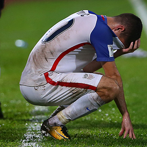 2017年10月10日,2018世预赛中北美加勒比地区,特立尼达和多巴哥战胜美国。图文失望的美国队球员。视觉中国 图