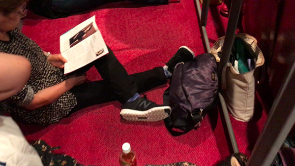 落座之前,我特意去最后一排座位与后墙之间过道转了一圈,这里是传说中的“站席”,此时已经有人在此席地而坐。为了让买不到票的观众也有机会进入剧场,宝塚会在演出当天现场售卖2500日元的特价站票,当然,买站票要做好心理准备,站着把长达三小时的剧看下来需要具备相当的体力。