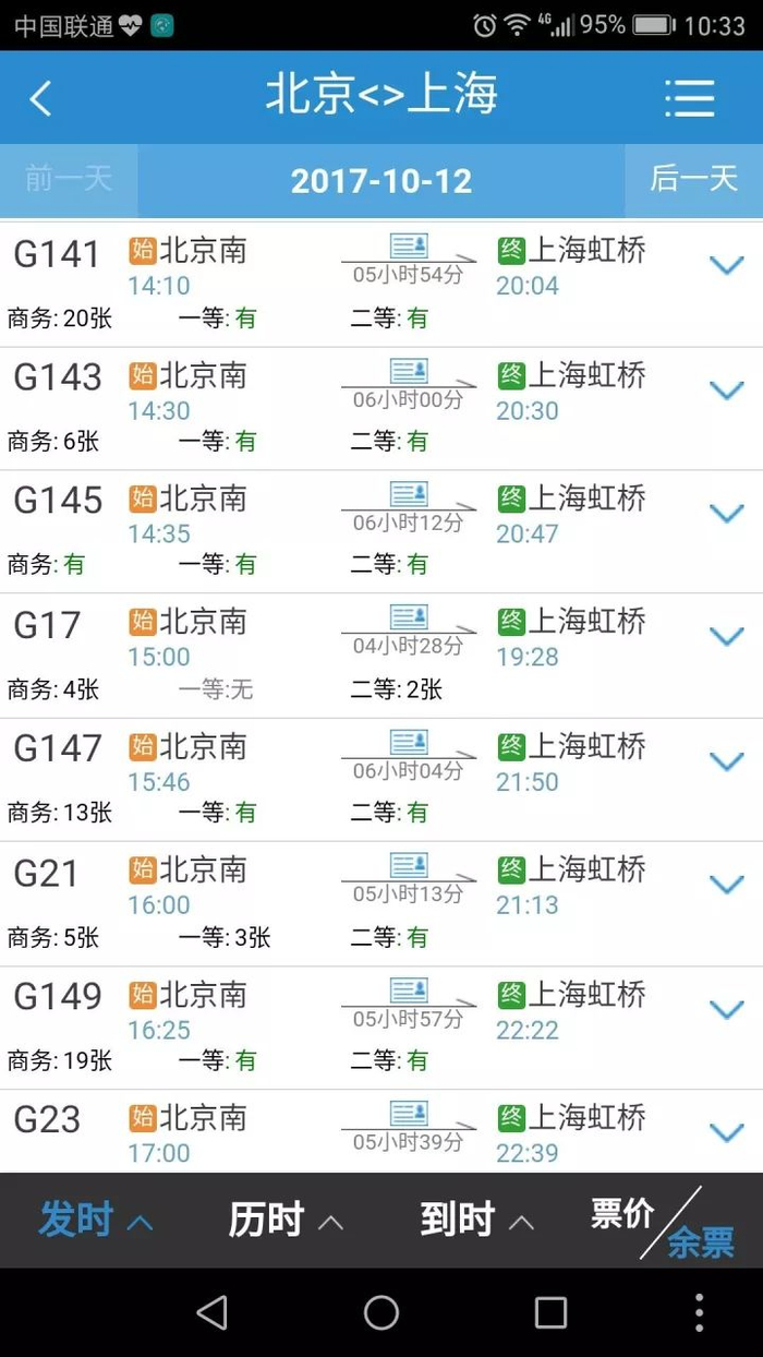 小编在12306APP上,尝试购买一张北京到上海的动车车票,发现此前显示的余票数量的地方,变成了一个“有”字。如果剩余车票很少,则依旧显示余票数量。