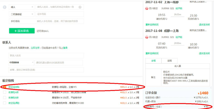艺龙:默认搭售共计90元航空意外险和航空延误险