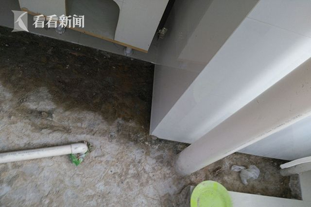 在等待了一个多星期之后,白阿姨发现,厨房管弄井的一角始终在渗水,随后她立刻找来了物业维修人员。