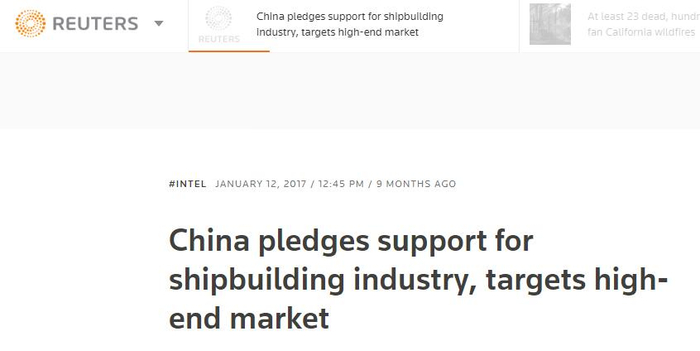 据路透社报道,今年1月,工信部等六部门联合发表了一份声明,对中国船舶工业的发展做出规划。