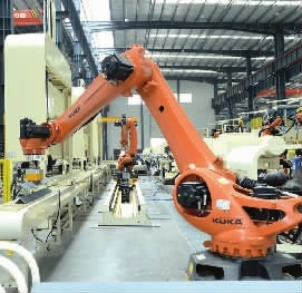 “工业4.0”时代,“黑灯工厂”成为衡量生产过程自动化、智能化的标准。所谓“黑灯工厂”就是生产车间内多为自动化无人生产线,即便关着灯,照常能生产。在泰富重工二期,我们就看到了这样一个机器人高度替代一线工人的“黑灯工厂”。立体仓库先根据每个工位点的需求,自动进行原料配送;加工线上,10台机器人踩着设定的节拍,机械臂灵活精准操作。钢材下料、加工、涂装、装配、检测、打包、入库,近20道工序全流程自动化,每30秒可出来一个成品,合格率达99%。如果全部换成人工,一个成品需要10个人花费4个小时才能完成。泰富重装的三大主打产品的绝大部分部件、工序,都在这里实现智能化生产,智能化率达80%,在行业内遥遥领先。
