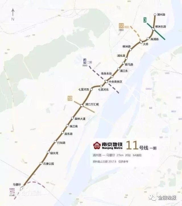 而未来,南京地铁11号线连接六合与发展迅速的江北,地铁S8二期为六合添彩!
