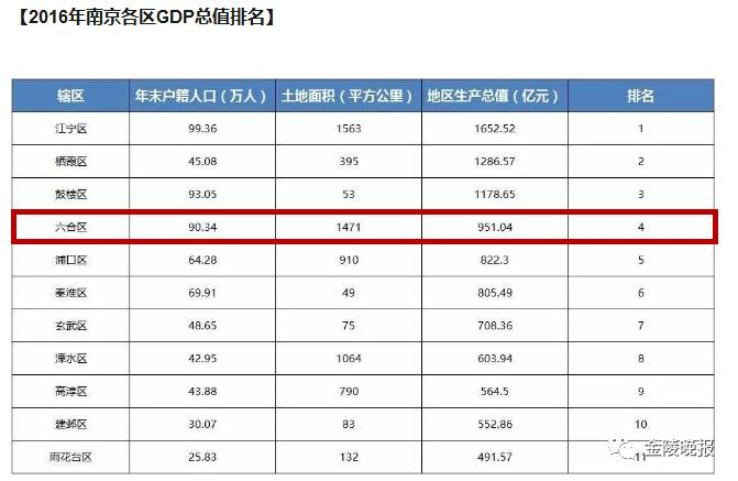 2016年南京各区的整体GDP排名,六合排名第四而已。
