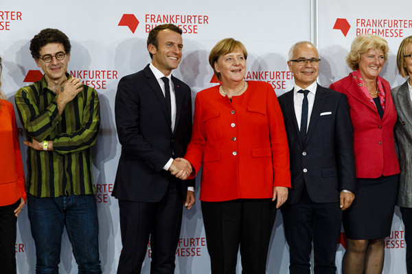 今年法兰克福书展的主宾国是法国,马克龙和默克尔联袂为书展开幕(来源:Frankfurt Book Fair/Marc Jacquemin 摄)