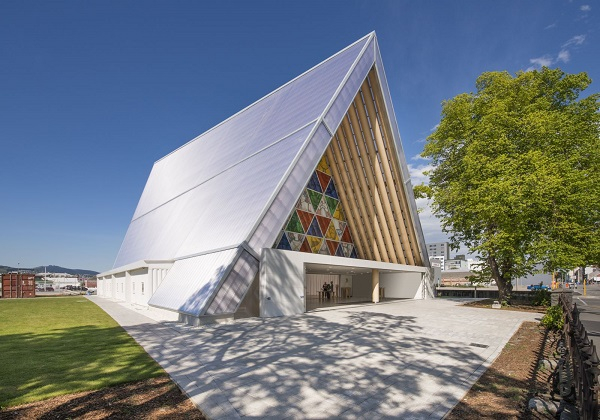 这是我要与大家分享的最后一个项目。2011年的地震摧毁了新西兰基督城的天主教大教堂,当地政府希望我免费为他们建造一个临时教堂。我研究了原来的教堂图纸,新建教堂采用了原来的结构跟形状,采用当地纸板做成纸筒,然后搭建成教堂,大家都非常开心。主教也十分开心,但他唯一不满意的是我连十字架都用纸管做,感觉非常廉价,我告诉他在日语里面纸和神的发音是一样的,他最后接受了这个设计。到目前为止这个教堂还在。