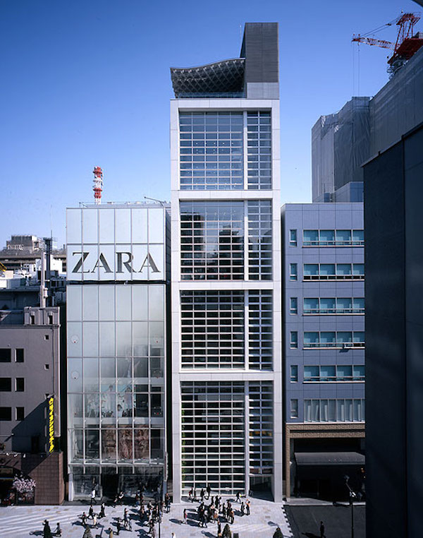 位于东京的Swatch集团中心是我通过竞赛争取到的项目,业主要求很高,希望每三层做一个设计,不要使用空调。我在外立面采用了卷帘窗格的式样,可自由打开,以此获得自然通风。由于地处寸土寸金的银座,建筑宽度非常窄,前后打开的卷帘门可以让前后两条街的客人都直接进入店内。此外,我在底层为每一个商铺设计了玻璃展示空间,如果顾客想要进一步购物,则有四部电梯将他们送达位于二楼、三楼的精品店门前。这种设计能够把户内跟室外做一个很好的结合。