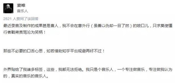但网友的说法再多再有理,对于窦唯近况最有发言权的还是他自己。而最近,他竟悄然在知乎现身,亲自回答了这个问题: