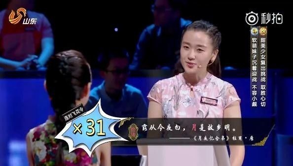 挑战者要在极短时间内快速反应,大脑像机器一样高速运转,搜索出带有关键词“月”的诗句,且准确无误地说出来!