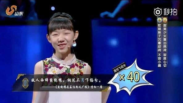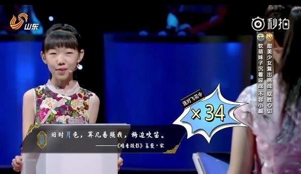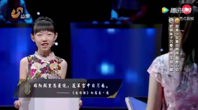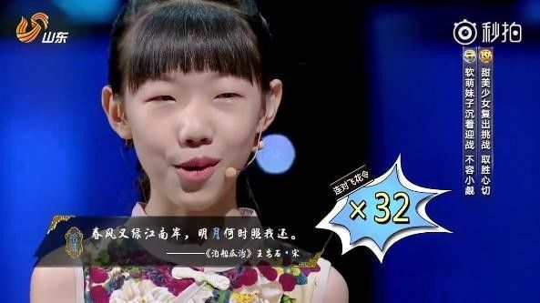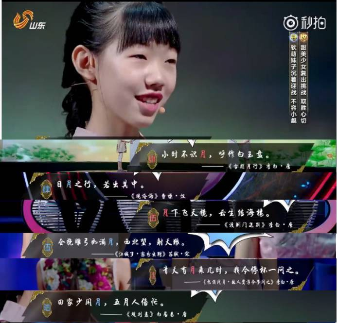 这短视频出自山东卫视的《国学小名士》,两位选手在3分钟之内以“月”字比赛飞花令。