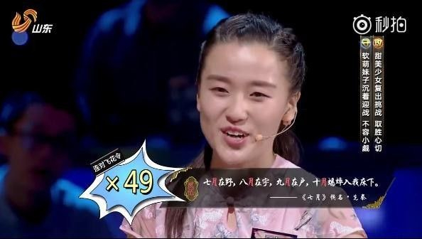 最后一回合,当高晗苦思冥想对出“七月在野,八月在宇,九月在户,十月蟋蟀,入我床下。”