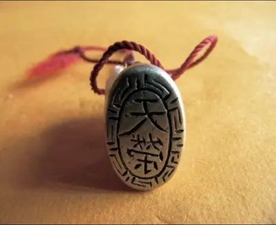 这枚银印章呈马蹄形银元宝,印面为椭圆形(图十七),在印面的边缘刻有回形纹,中间刻有汉字(图十八、图十九)“天荣”,它是藏文的音译,亦作“田戎、天荣、填茸、帖蓉、詹荣、擦绒”。此称号是名门望族“擦绒”名号中的一个特殊称谓。