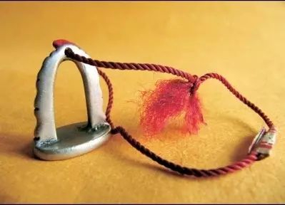 图十七 藏军总司令擦绒的马蹄形银印章,其印纽配有原配真丝印绶。