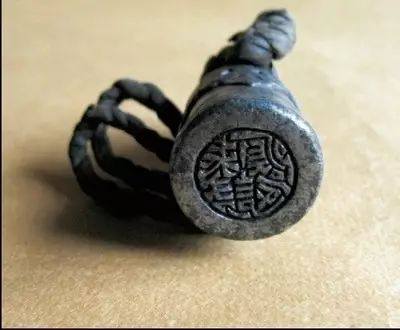 图十二 霍尔康萨家族诺颜和硕齐的双 面印章,并系有原配鹿皮印绶。