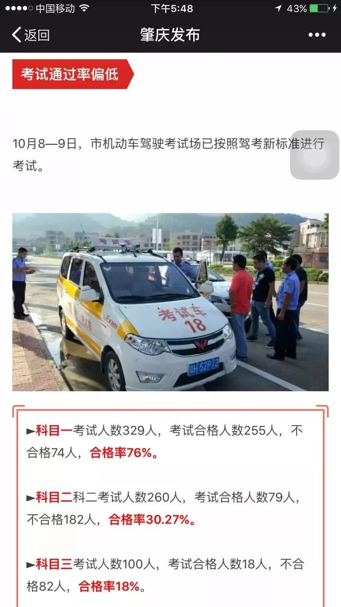 肇庆科目三合格率只有18%