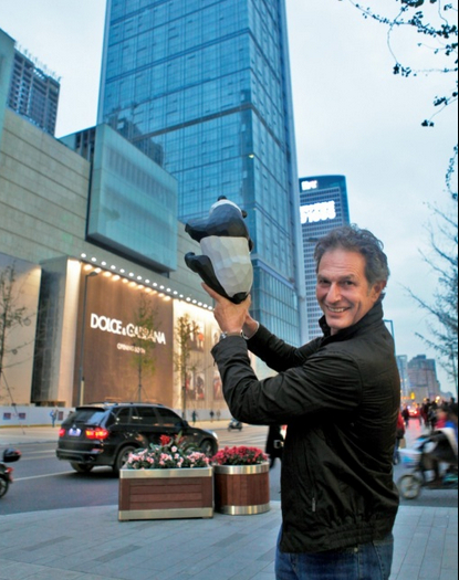 “I Am Here”具双重含意,不止透过这一艺术品让我们思考自身的存在,也对城市发展繁荣进行反思,提醒人们不要忘记在商业发展的同时,关爱像熊猫一样与我们同在一个地球的珍贵生灵。