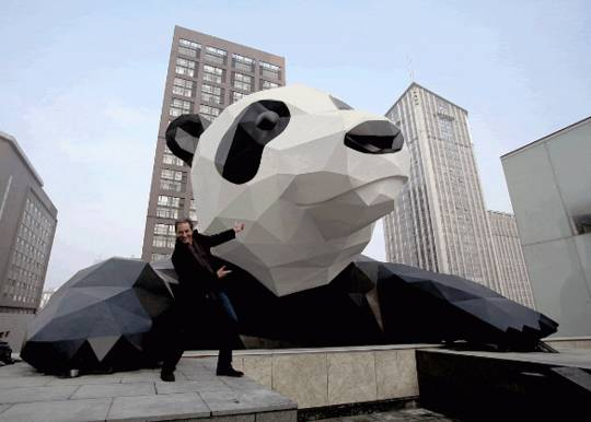 也是国内目前最大的不锈钢熊猫装置作品