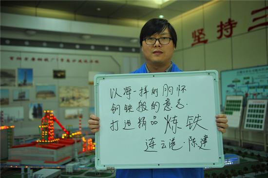 我叫陈建,来自江苏省连云港市,2008年从北京首钢炼铁厂调到首钢京唐公司炼铁作业部,已经在炼铁工作12年了,现担任炼铁作业区的挂职首席作业长,为实现高炉的高水平稳定顺行不懈努力。