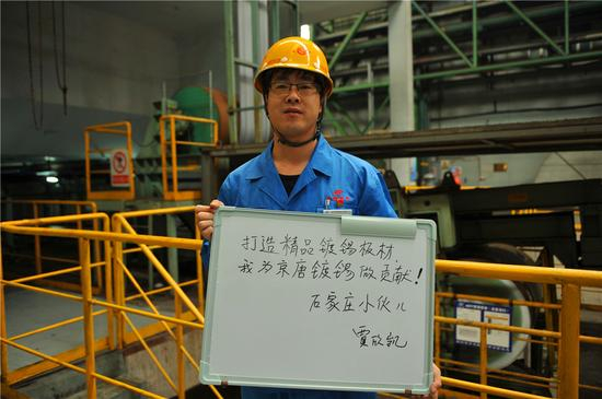 我叫贾欣凯,来自河北省石家庄市,2008年进入京唐公司,目前在镀锡板事业部酸轧作业区担任班长,倒班的这些年,积累了生产操作、产线运行、质量提升方面的一些经验,我要为镀锡产线更加顺稳,质量更加稳定贡献自己的一份力量!
