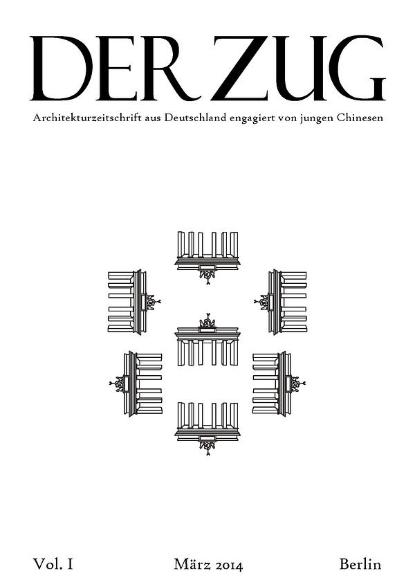 Der Zug创刊号封面以柏林为题。创刊主编刘泉在卷首语将杂志定位为一份“由正在和曾经求学德国(德语区)的年轻人自发筹办的建筑学地下杂志。”在这里定下了Der Zug的基调,“德语区”——文化语境,“年轻人”——团队身份,“地下杂志”——精神气质。