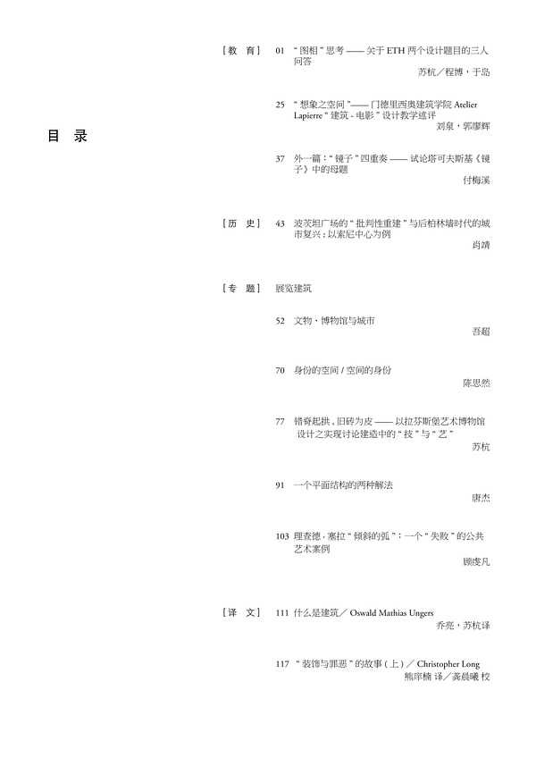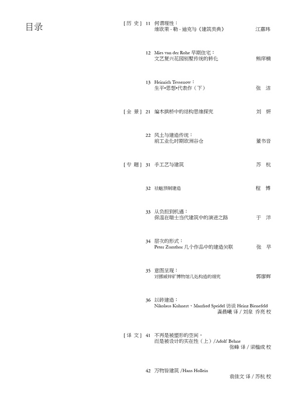 自创刊之初,编写团队便确立了读者对象和任务定位,既面向建筑学专业人士又面向于建筑爱好者,专注于对德语区建筑文化的观察、理解、转译、引介、释义、阐发。