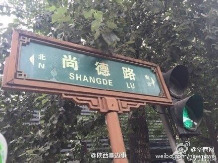 商德路是南北路,路牌是绿色的。