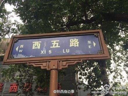 西五路是东西路,路牌是蓝色的。