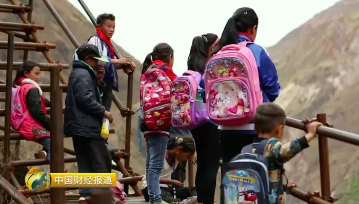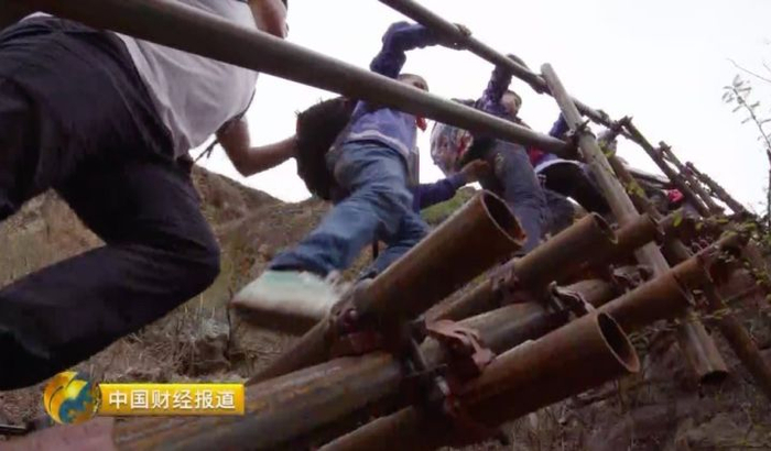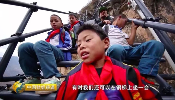 孩子们每天爬天梯上下学,自由摄像师赵明说:“它根本不是一条人走的路,可以说是猴子走的路。在悬崖边上的一些草,就打成一个一个的结,孩子们就是抓着这个草就往上爬,当时我理解的就是说救命稻草。”