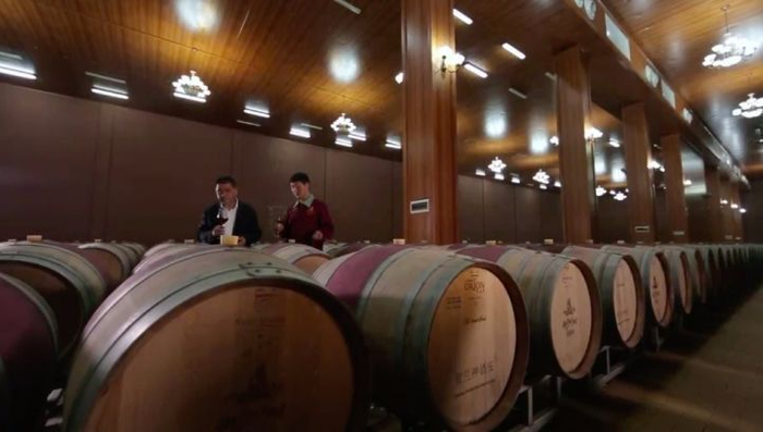 陈德启教工人们“深沟矮种”的新技术。这项技术是他专门请人研发的,可以让戈壁上的葡萄产量提高15%。今年第一批葡萄酒酿出来了。葡萄酒从种植、酿造到罐装,需要整整七年。好品质的葡萄酒,靠的是“七分种,三分酿”。