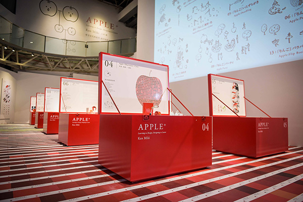 相比在日本举办的《Apple+学习方式的设计“苹果”与日常生活》展览上更精致而简洁的“概念”展示,上海的这14个展柜,或许是为了适应宽敞的展厅特别设计的,也许从另一方面展示了关于“面积”的概念。不过,耐着性子仔细看完这14个苹果红的大柜子,便也拿到了解读设计的钥匙。