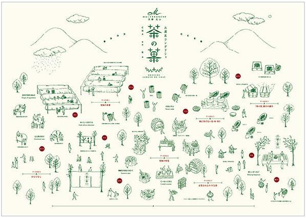 二楼的展厅,有一些有趣的设计等待着观看者发现。譬如,三木健展示了一个为京都一家西点店所作的商品开发与包装概念案例。正如好的设计令人看见了“真正的丰富是什么”,好的西点设计也能帮助人实现“如果有这样的蛋糕店就最棒了”的梦想。基于“商品是理念的孩子,没有理念就没有设计”的观点,三木健的一张“茶点”诠释图几乎覆盖了从食材生长到店铺设计的每一个环节,而这张图恰恰与之前的“Apple”概念诠释图几乎完美对应,让人理解了概念到应用的转换。更为可贵的是,设计师还常常“想象人们使用时的喜悦感”,这也是好的设计在理性色彩之外透出淡而隽永的人情味之所在。