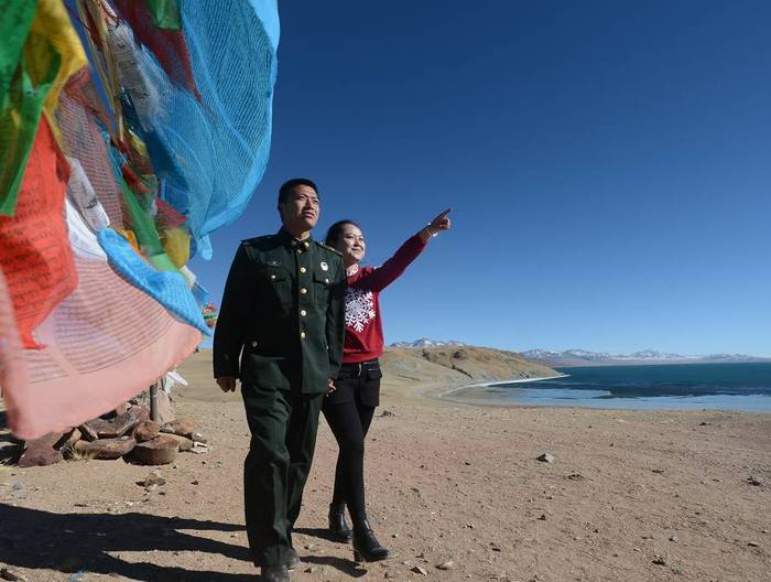 如今,我已理所当然地跨入军嫂的行列,与众多的嫂子一样,聚少离多,也没有多少时间煲电话粥。因为他和其他千千万万的战友一样,心甘情愿地站在缺氧的高原上, 用自己独特的方式实现着人生价值和热血青春。在高原一线默默地坚守着,捧着一颗炽热的爱国之心守卫祖国万里边防线的安宁。所以,我为他是一名驻守阿里的军人而骄傲!