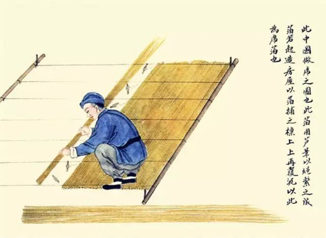 此箔用芦苇以绳系之成箔,若起造房屋以箔铺之檩上,上再复泥,以此为席箔也。