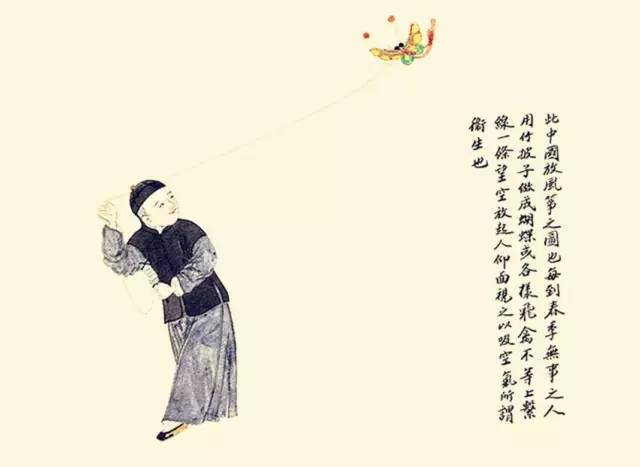 每到春季,无事之人用竹披子做成蝴蝶或各样飞禽不等,上系线一条,望空放去,人抑面视之,以吸空气,所谓卫生也。