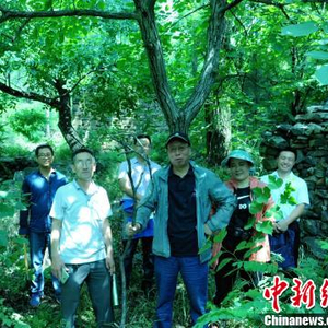 杨双牛(前右)陪同外商上山考察太行山生态大花园项目。 顾大鹏 摄
