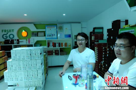 富岗苹果企业集团计划三年内在内地开设苹果专卖店300多家,图为内邱县专卖店一角。 顾大鹏 摄