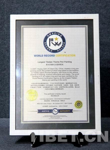 世界纪录认证“世界上最长的藏戏主题钢笔画”