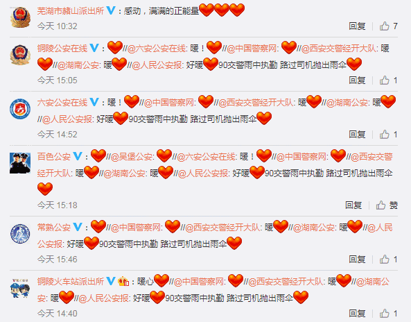 微博得到了各地公安官方微博和网友们的点赞、转发: