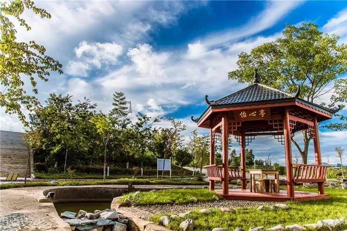 画面中的凉亭与后方的白云相呼应,朱红色的凉亭占画面较大比例,引导整个画面,让观赏者的目光由凉亭往外延伸,看到美丽的蓝天白云。此外,画面中拍摄的内容较多,所以依然是遵循1/3的黄金分割比例。